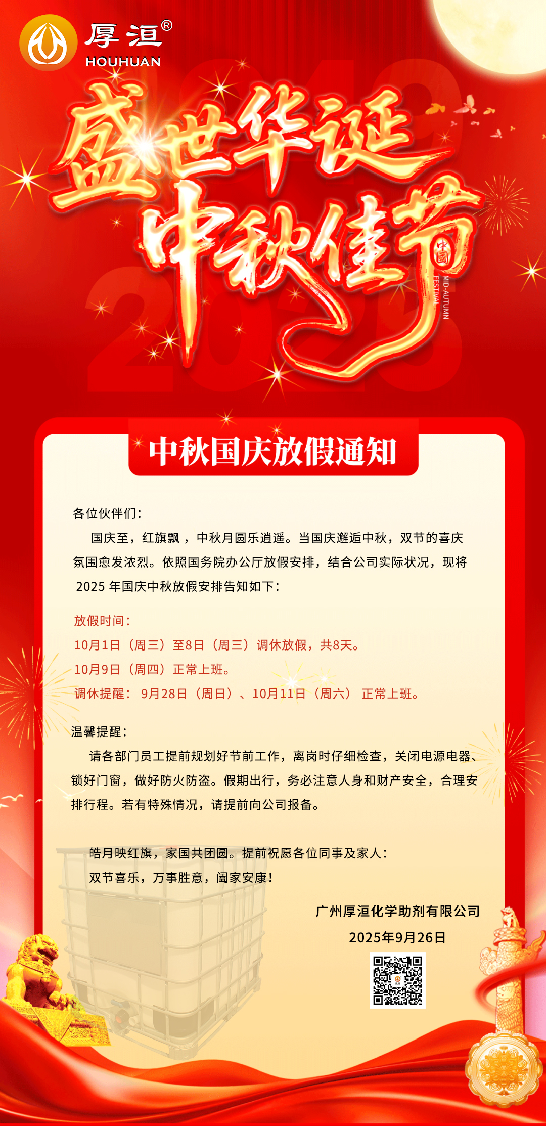 國(guó)慶至,紅旗飄 ,中秋月圓樂逍遙。當(dāng)國(guó)慶邂逅中秋,雙節(jié)的喜慶氛圍愈發(fā)濃烈。依照國(guó)務(wù)院辦公廳放假安排,結(jié)合公司實(shí)際狀況,現(xiàn)將 2025 年國(guó)慶中秋放假安排告知如下: